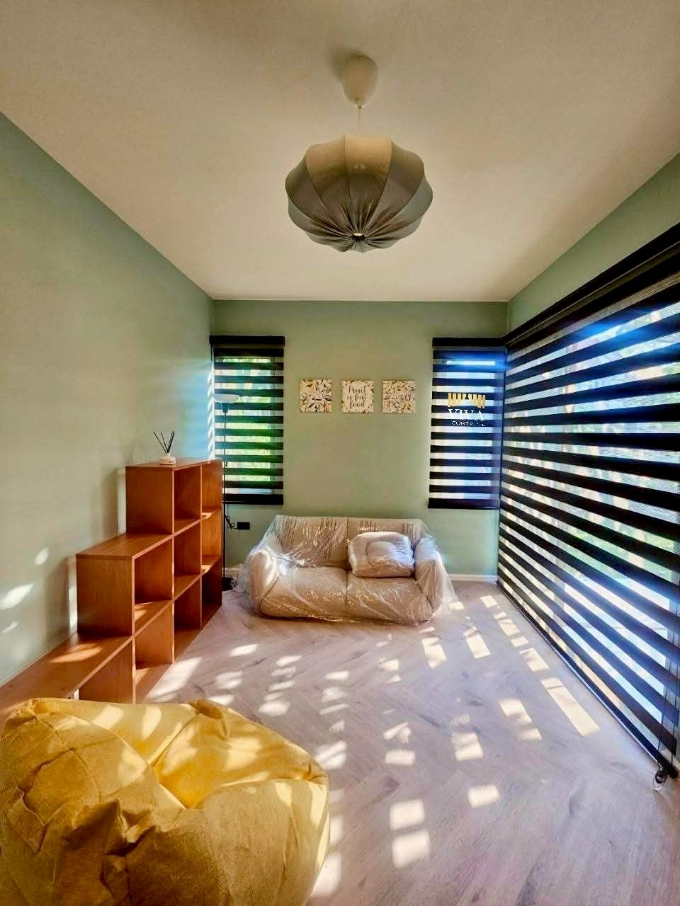 ม่านซันสกรีนเป็นผ้าทอพิเศษที่ช่วยกรองแสงแดดและลดรังสี UV แต่ยังมองเห็นวิวภายนอกได้ ส่วนแบบซ้อนชั้น (Zebra) จะมีผ้าทึบ–โปร่งสลับกัน สามารถเลื่อนปรับให้แสงผ่านหรือบังได้ จุดเด่นคือการควบคุมแสงอย่างแม่นยำ ให้ความรู้สึกทันสมัย และช่วยลดความร้อนในห้อง
